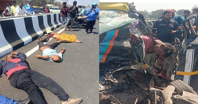प्रवाशांनी भरलेली ही इको कार महामार्गावरून जात असताना या काळी पिवळी प्रवासी  इको व्हेन मध्ये एकूण १२  प्रवासी होते. समोरून येणाऱ्या सिमेंट मिक्सरच्या गाडीने या इको व्हॅन ला धडक दिली.त्यात ११ जणांचा दुर्दैवी मृत्यू झाला असून एक जण गंभीर जखमी झाला असून त्याच्यावर स्थानिक रुग्णालयात उपचार सुरू आहेत. या अपघाताचा आवाज इतका मोठा झाला की स्थानिक नागरिकांनी हा आवाज ऐकून त्या ठिकाणी मदतीसाठी धाव घेतली. चक्काचूर झालेल्या या इको कारमधून मृतदेह बाहेर काढण्याचे काम स्थानिकांनी  अत्यंत जड अंतकरणाने केलं
