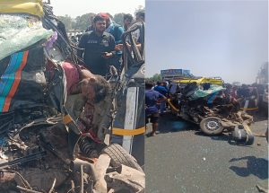 कल्याण मुरबाड रायते नवीन पुलावर मिक्सर आणि काळी पिवळी गाडीची समोरासमोर धडक : ११ जणांचा जागीच मृत्यू : गाडीचा चक्का चुरा