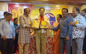 मुंबई-परेल दि.२८ (गुरुनाथ तिरपणकर) : आर्यारवी एंटरटेनमेंटचा तिसरा राष्ट्रीय-आंतरराष्ट्रीय लघुपट पुरस्कार वितरण सोहळा नुकताच शिशुविकास हॉल, बेस्ट वसाहत, राजकमल स्टुडिओ जवळ, परेल येथे सिने-नाट्य क्षेत्रांतील मान्यवरांच्या उपस्थितीत संपन्न झाला. याप्रसंगी सर्व विजेत्या लघुपटांचे सादरीकरण करण्यात आले. प्रसिद्ध सिने-नाट्य अभिनेते, दिग्दर्शक प्रदीप कबरे, सही रे सही नाटक फेम विनोदी अभिनेते जयराज नायर, प्रसिद्ध उद्योजक, समाजसेवक, अभिनेते खलील शिरगांवकर, शिर्के प्रतिष्ठानचे अँड सुनिल शिर्के, जनजागृती सेवा संस्थेचे संस्थापक-अध्यक्ष गुरुनाथ तिरपणकर, प्रसिद्ध समाजसेविका सीमाताई पाटील, प्रसिद्ध विनोदी अभिनेते जयवंत भालेकर, कांचन पगारे आदी मान्यवर यांच्या हस्ते सोहळ्याचे दीपप्रज्वलन करून काश्मीरमधिल दहशतवादी हल्ल्यात मृत्युमुखी पडलेल्या महाराष्ट्रातील व्यक्तींना भावपूर्ण श्रद्धांजली वाहण्यात आली.