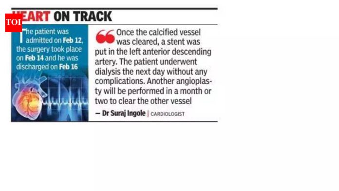 पुणे: पुण्यातील एका खाजगी रुग्णालयात डॉक्टरांनी केलेल्या गुंतागुंतीच्या हृदय प्रक्रियेमुळे मूत्रपिंड निकामी झालेल्या आणि ट्रिपल वेसल डिसीजने ग्रस्त असलेल्या एका ६० वर्षीय व्यक्तीचे प्राण वाचले, ज्यामुळे रक्तवाहिन्या अरुंद झाल्या होत्या आणि बायपास खूप धोकादायक होता.रुग्ण नियमित डायलिसिसवर होता, परंतु त्याचा रक्तदाब कमी होईल आणि प्रक्रियेदरम्यान हृदयाचे ठोके अनियमित झाले. त्यांची प्रकृती हृदयविकाराच्या दिशेने जात होती.अँजिओग्राफीमध्ये ट्रिपल वेसल डिसीज दिसून आला, हा कोरोनरी धमनी रोगाचा एक गंभीर प्रकार आहे, जेथे तीनही प्रमुख हृदय धमन्या (डाव्या अग्रभागी उतरत्या, डाव्या सर्कमफ्लेक्स आणि उजव्या कोरोनरी धमनी) मध्ये लक्षणीय प्लेक तयार होते, ज्यामुळे रक्त प्रवाह मर्यादित होतो. विशिष्ट प्रकरणात, रुग्णाच्या कॅल्सीफाईड रक्तवाहिन्या कडक झाल्या होत्या आणि त्यांना तोडणे खूप कठीण झाले होते. हृदय कमकुवत झाले होते आणि पूर्ण क्षमतेच्या 20% वर पंप करत होते. संपूर्ण स्थिती कोणत्याही प्रक्रियेसाठी उच्च धोका होती.लोणी येथील विश्वराज रुग्णालयातील हृदयविज्ञान विभागाचे प्रमुख, हृदयरोगतज्ज्ञ डॉ. सूरज इंगोले यांनी उच्च-जोखीम असलेल्या अँजिओप्लास्टी प्रक्रियेमध्ये स्टेंट तैनात करण्यासाठी कॅल्शियम ऑर्बिटल एथेरेक्टॉमी करून समस्येचे निराकरण केले.इंगोले म्हणाले, “आम्ही रुग्णाची स्थिती आणि गुंतागुंत लक्षात घेऊन अँजिओप्लास्टीची निवड केली. उच्च कॅल्सीफाईड रक्तवाहिन्या, ज्या तुटणे कठीण आहे, त्यांना स्टेंटसाठी साफ करणे आवश्यक आहे. म्हणून, आम्ही कॅल्शियम ऑर्बिटल एथेरेक्टॉमी केली, ही एक कमीत कमी हल्ल्याची प्रक्रिया आहे ज्यामध्ये डायमंड-लेपित मुकुट किंवा प्लॅकेट फिरवणारे कॅल्शियम-लेपित मुकुट वापरतात.”रुग्णाला 12 फेब्रुवारी रोजी दाखल करण्यात आले, 14 फेब्रुवारी रोजी शस्त्रक्रिया झाली आणि 16 फेब्रुवारी रोजी त्याला डिस्चार्ज देण्यात आला.इंगोले पुढे म्हणाले, “एकदा कॅल्सीफाईड जहाज साफ झाल्यानंतर, डाव्या अग्रभागी उतरत्या धमनीत स्टेंट टाकण्यात आला.” रुग्णाला दुसऱ्या दिवशी कोणतीही गुंतागुंत न होता डायलिसिस करण्यात आले. दुसरी अँजिओप्लास्टी एक किंवा दोन महिन्यांत केली जाईल जेणेकरुन दुसरे पात्र साफ होईल.त्यांनी सांगितले की त्यांनी इनहाऊस इंट्राव्हास्कुलर अल्ट्रा साउंडचा देखील वापर केला, जी एक कॅथेटर-आधारित, कमीतकमी हल्ल्याची इमेजिंग प्रक्रिया आहे जी रक्तवाहिन्यांच्या आतील तपशीलवार, रीअल-टाइम 360-डिग्री क्रॉस-सेक्शनल प्रतिमा तयार करण्यासाठी उच्च-फ्रिक्वेंसी ध्वनी लहरी वापरते.ही केस धोकादायक आणि गुंतागुंतीची होती, असे ऍनेस्थेटिस्टने सांगितले. ते म्हणा