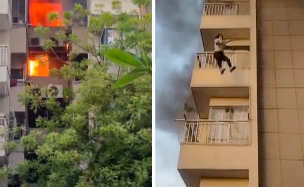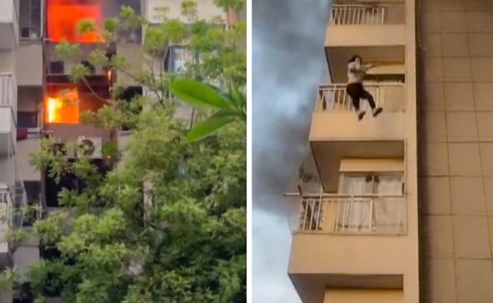 Gugujarat | #वॉच: आगीतून सुटण्यासाठी बाई अहमदाबाद इमारतीच्या 5 व्या मजल्यावर उडी मारली