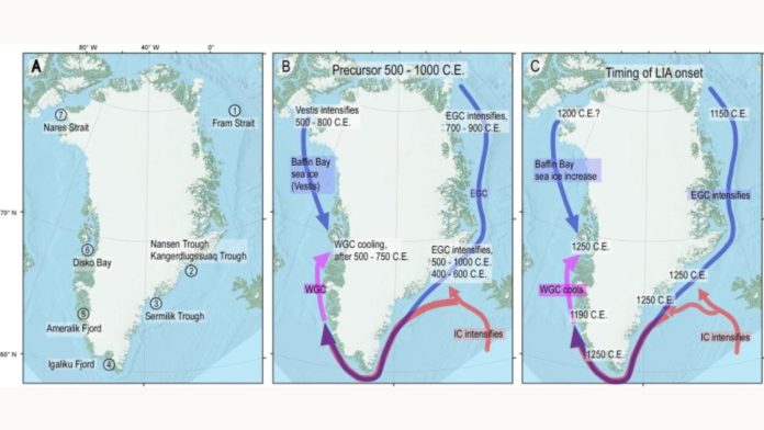 त्या काळात तयार झालेल्या थंड परिस्थितीनुसार तयार झालेल्या ग्रीनलँडच्या मोठ्या हिमनदीपासून बर्फ तोडल्यानंतर खडक हलविल्यानंतर खडक हलविण्यात आल्या आहेत असे दर्शविणारे शास्त्रज्ञांनी लालिया येथे ठेवलेल्या खडकांच्या युगाचा अभ्यास केला.