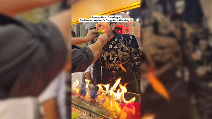 दुसर्या क्लिपने एका अतिथीला प्रसिद्ध अग्नीच्या पानाची चव घेण्याचे धैर्य दाखवले. या चवदारपणाची सेवा करण्यासाठी, सुपारीचे पॅन सहसा केंद्रातून आग लावते. व्हिडिओमध्ये, आम्ही पाहतो की पानवाला त्वरीत ज्वालांना जोडण्यासाठी आणि त्वरित भरत असताना लग्नाच्या पाहुण्यांना आनंद घेण्यासाठी उपलब्ध असलेल्या इतर अनेक पदार्थांपैकी एक आहे. अहवालानुसार, या कार्यक्रमात स्वाक्षरी सोन्याच्या पानाची पॅन देखील देण्यात आली.